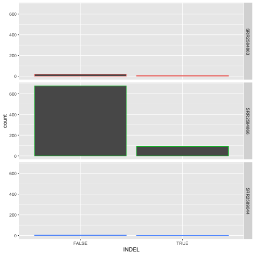 ggplot(data = variants, aes(x = INDEL, color = sample_id)) +